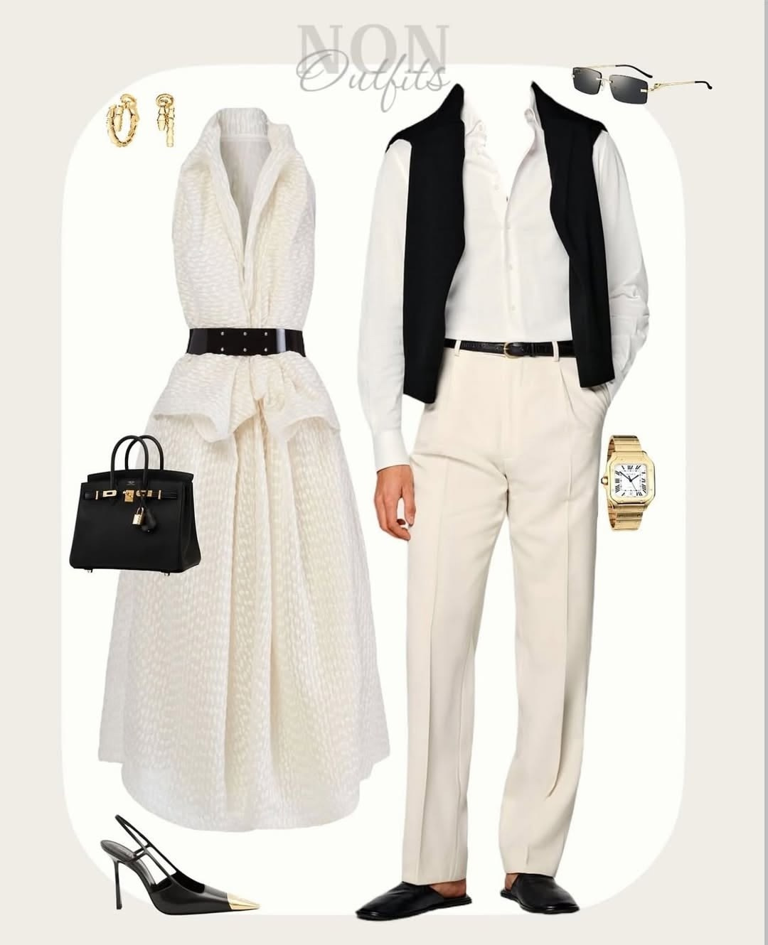 — Базовые вещи (например: белый верх + джинсы, чёрное платье)
